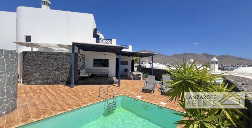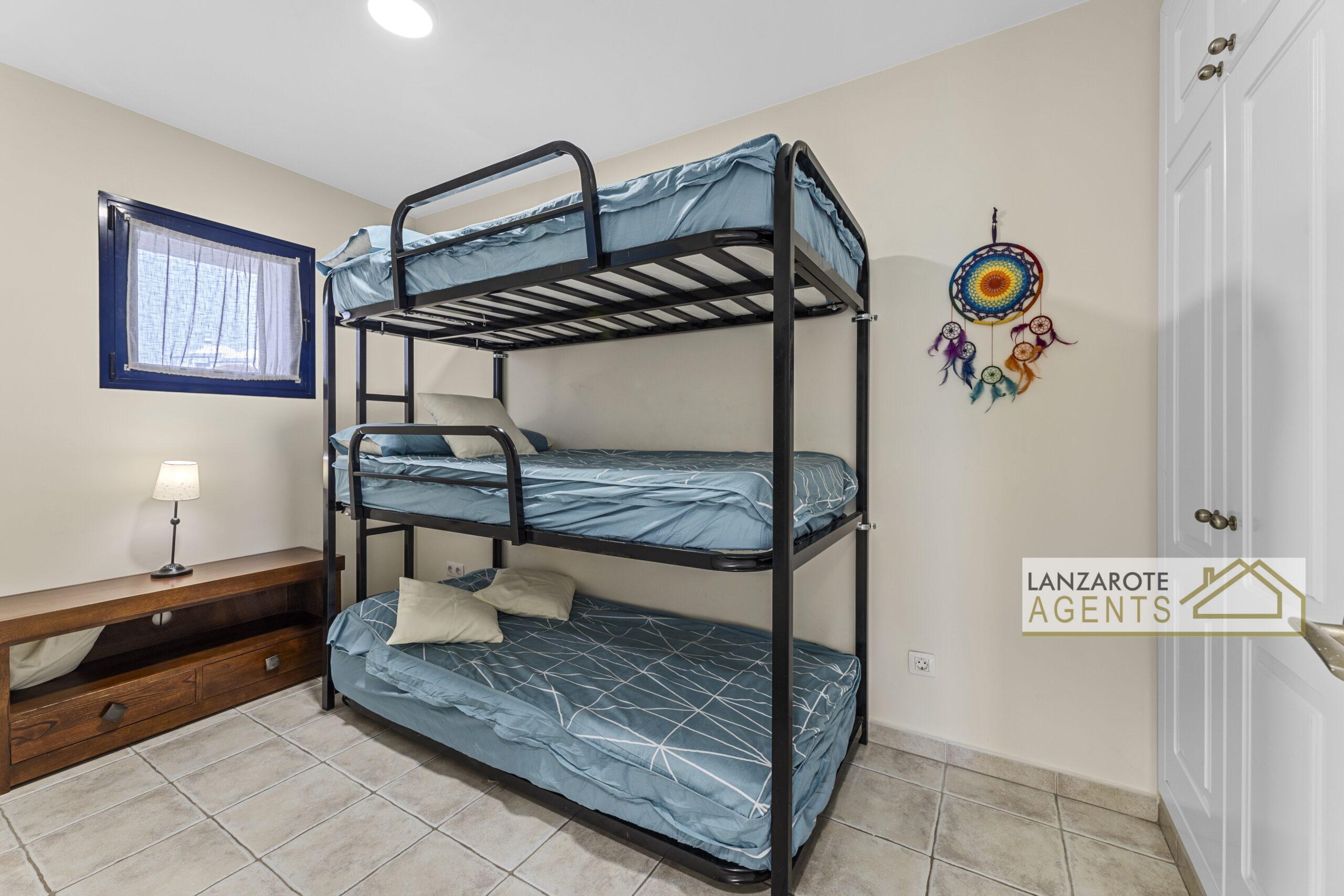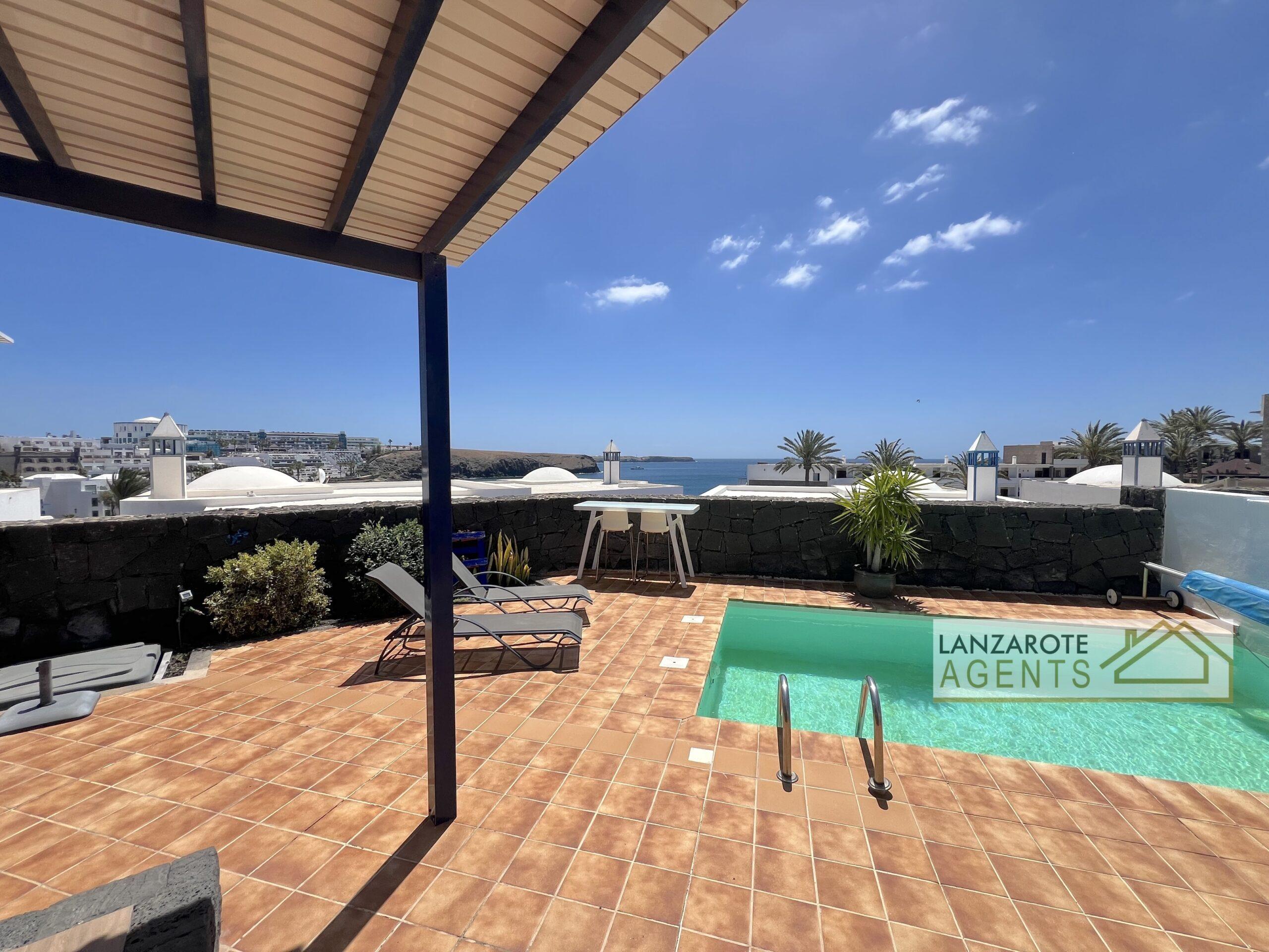 Outside, the property truly shines. A private terrace with swimming pool creates a tranquil retreat for relaxing in the sun, complemented by pleasant sea views towards the stunning Papagayo coastline. Two additional upper-level terraces offer perfect vantage points for enjoying spectacular sunrises and embracing Lanzarote’s year-round outdoor lifestyle.